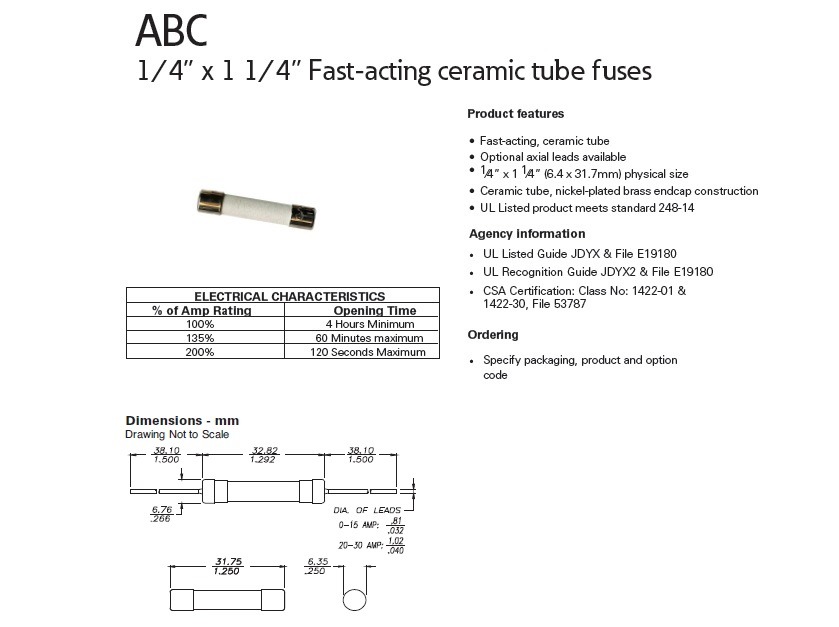 ฟิวส์ เซรามิค ABC Series Fast-acting ceramic tube fuse