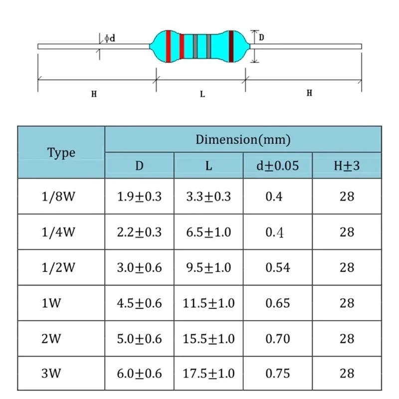 ชนิด/แบบ: ฟิล์มโลหะออกไซด์ (Metal Oxide Film Resistor: MOF)